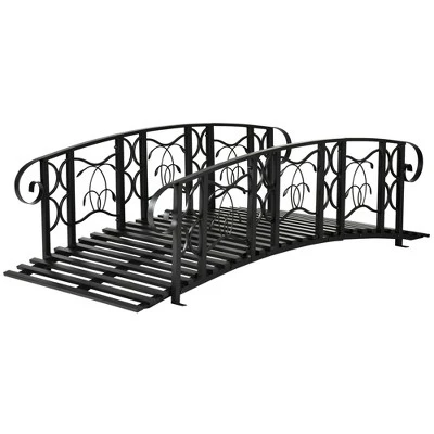 Outsunny 6′ Metal Arch Backyard Garden Bridge With 660 Lbs. Weight Capacity, Safety Siderails, Vine Motifs For Backyard Creek, Stream, Pond, Black