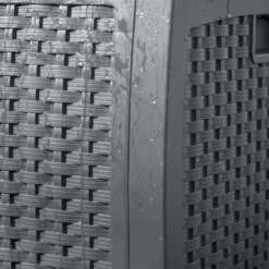 Suncast 60 Gallon Outdoor Storage Resin Wicker Design Cube Shape Patio Deck Box