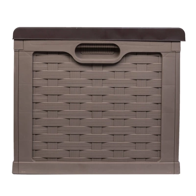 The 153 Gallon Plastic Deck Box is ideal for yards and patios of all sizes. With an extra large 153 gallon capacity, it will neatly store all pool toys, towels, tools, gardening equipment and more. Extremely sturdy lid lockable provides seating space for up to 3 adults. Lift up lid with pneumatic piston for easy opening. Simple to assemble, 2 wheels for easy moving. Waterproof top and vented for dry storage.