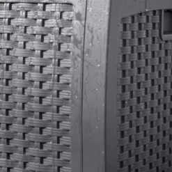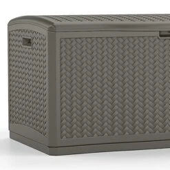 - DECK STORAGE BOX: Beautiful wicker plastic outdoor box has a 73-gallon capacity for patio, deck, yard, porch, garage, and shed storage!
